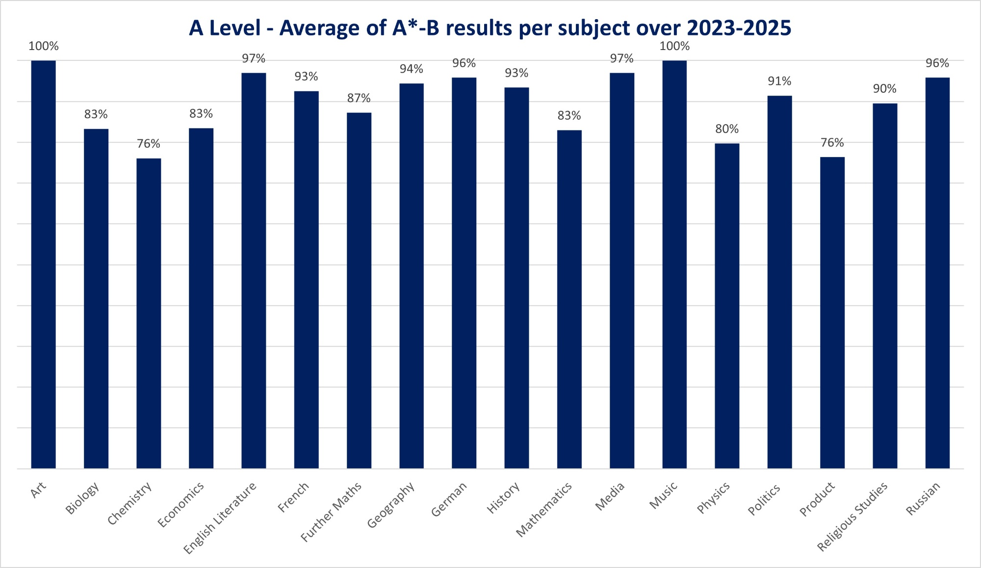 In 2024-25, our students achieved 30.7% of grades at A*, 65.1% at A*-A and 86% at A*-B.